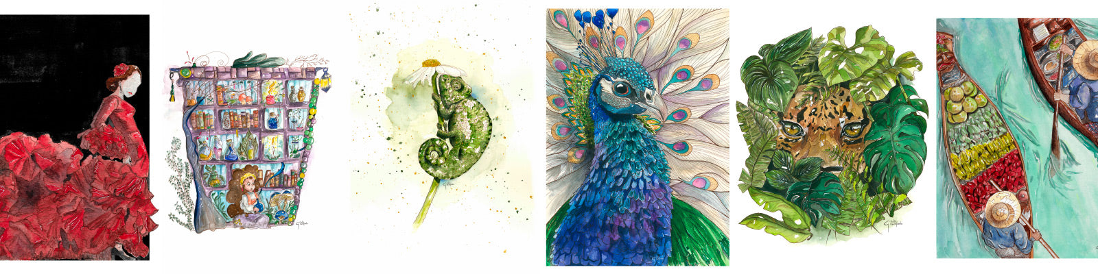 A curated selection of my finest watercolor works — numbered, signed, and printed on 100% cotton paper.